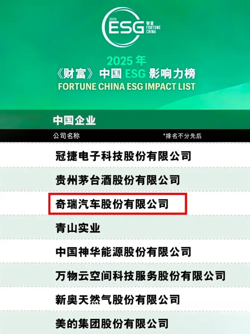 2025年5月16日,《财富》杂志最新发布的中国ESG影响力榜迎来了一位熟悉的面孔——奇瑞汽车股份有限公司★◆★■★◆。作为中国自主汽车品牌的领军企业◆■★◆,奇瑞凭借在环境责任、社会责任和公司治理三大维度的突出表现,成功实现榜单梅开二度■◆★■,连续第二年获此殊荣◆★■★◆◆。这不仅是对奇瑞ESG实践成果的权威认证,更是中国汽车产业可持续发展实力的生动展现★★◆■■。
